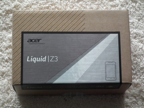 W pudelku znajdziemy standardowe wyposażenie: smartfon Acer Liquid Z3, akumulator o pojemności 1500 mAh, ładowarkę sieciową, kabel USB i instrukcję obsługi. Zaskakuje brak w zestawie zestawu słuchawkowego, tym bardziej że w aplikacjach znajdziemy radio FM, które wymaga podłączenia zestawu słuchawkowego, który służy jako antena.