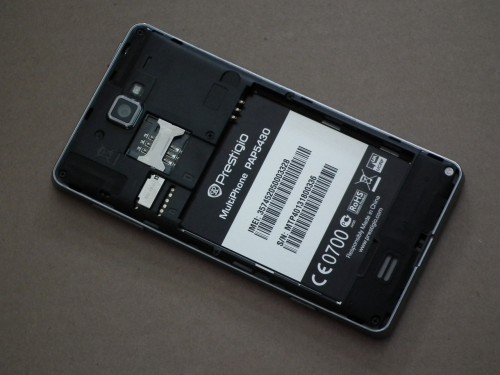 Po zdjęciu tylnego panelu ujrzymy akumulator, gniazdo kart SIM i gniazdo dla kart pamięci typu microSD do 32 GB.