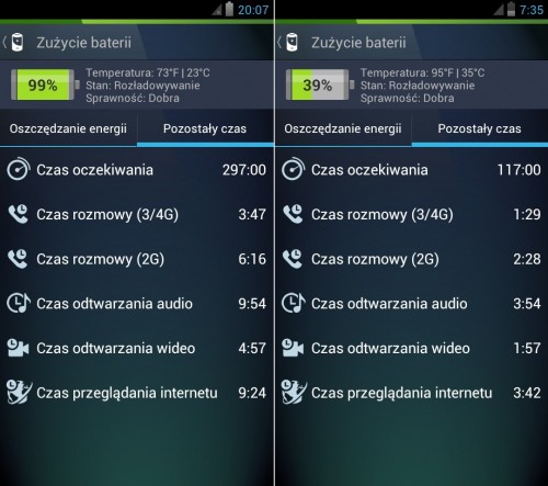 Wprawdzie Intel chwali się, że Atom Z2420 jest procesorem efektywnie oszczędzającym energię, ostatecznie tyle nie wytrzymała. Ale i tak dwa dni przy intensywnym korzystaniu, ze smartfona, jest wynikiem zadowalającym w porównaniu do możliwości urządzenia oraz do osiągów tego typu urządzeń. Należy się liczyć z tym, jeżeli będziemy słuchać mp3, chodzić po stronach, odbierać maile, dużo rozmawiać, to bateria będzie potrzebowała codziennego ładowania. Jednak w spokojnych warunkach, bez podłączenia do Wi-Fi wytrzyma 3 dni.