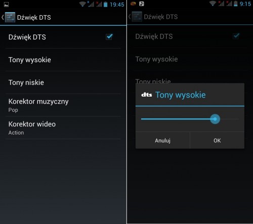 Oczywiście, na górze ekranu głównego mamy dostęp do rozbudowanego, rozwijanego paska przełączników i skrótów, który umożliwia szybie włączanie i wyłączanie różnych modułów. Od standardowych smartfonów V370 wyróżnia się konfiguracyjnym panelem DTS i obsługą dwóch kart SIM .