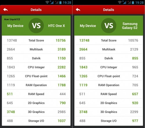Wyniki testu przeprowadzonego w AnTuTu Benchmark i Quadrant Benchmark widać poniżej: