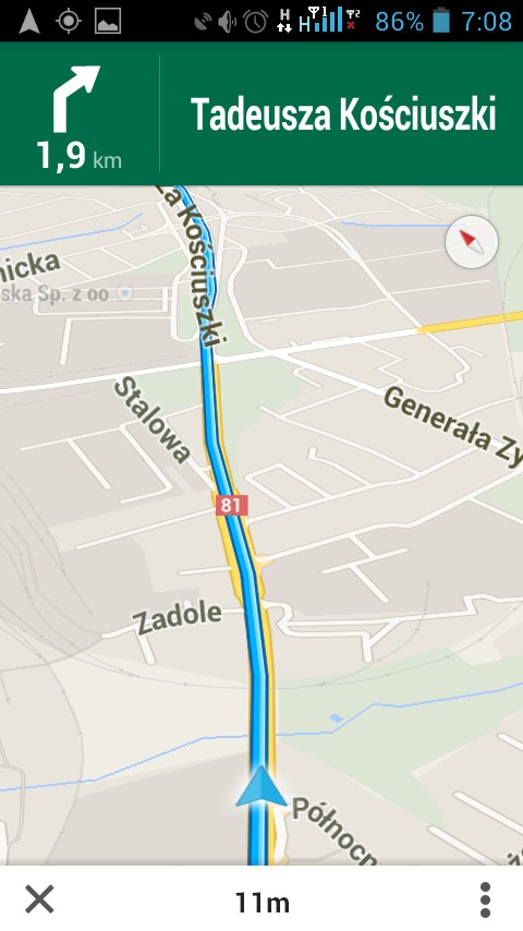 Wbudowany odbiornik GPS dość długo łapie sygnał bez wspomagania sieci. Przy wsparciu połączenia sieciowego połączenie następuje błyskawicznie a połączenia podczas testów nie zostały przerywane. Nawigacja jest płynna i dokładna.