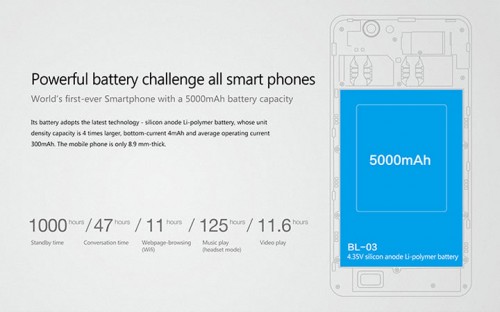 Na smartfon marki THL, którego pojemny akumulator 5000 mAh zapewnia 1000 godzin czuwania w trybie GSM, do 47 godzin rozmów i 11 godzin transmisji danych oraz 11,6 godzin odtwarzania wideo. Ale nie tylko akumulator jest zaletą tego telefonu.