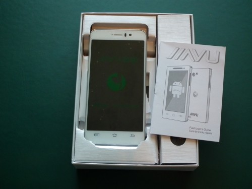 Telefon wraz z akcesoriami (ładowarka + kabel microUSB i akumulator oraz instrukcja) zapakowany jest w bardzo gustowne pudełko z papieru powlekanego, z logo Jiayu. Testowany smartfon Jiayu G4S jest w kolorze białym.