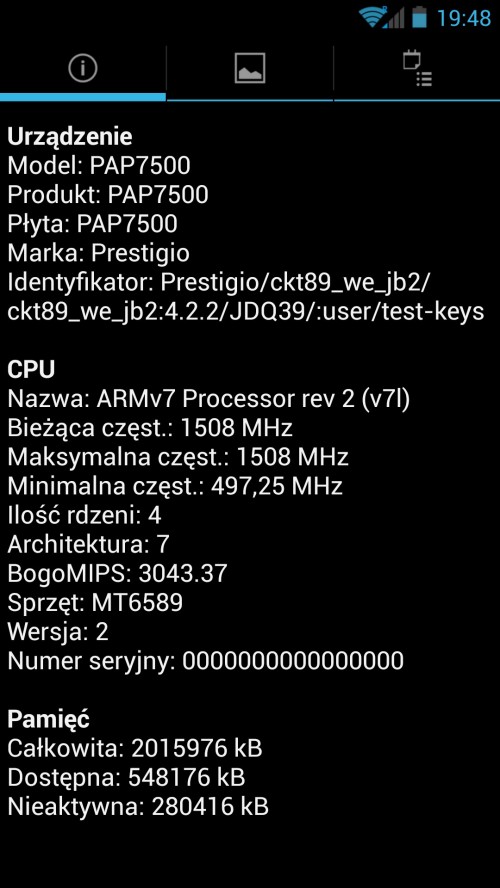 Prestigio Multiphone PAP7500 to smartfon, który od pierwszej chwili mile zaskakuje. Łączy w sobie duży wyświetlacz, dobrą jakość wykonania oraz funkcjonalność. Nie zapominając o najważniejszym elemencie – autorskich aplikacjach w 200GB chmurze SurDoc, zwiększających komfort użytkowania. Warto dodać, że za atrakcyjną cenę, która aktualnie wynosi niecałe 850 zł dostaniecie wersję z 1GB RAMu i 16GB przestrzeni dyskowej.