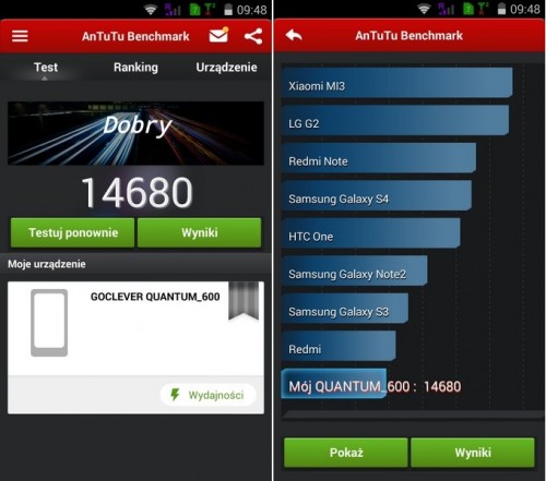 Goclever Quantum 600 na polskim rynku kosztuje 599 zł. Za tę cenę dostaniecie poprawnie wykonany i dobrze wyposażony smartfon, który dodatkowo posiada potężny ekran. Trzeba jednak ścierpieć w nim krótki czas pracy akumulatora, przeciątną jakość aparatu oraz wyświetlacz jednak gorszy niż w czołówce nowoczesnych phabletów. Z pozytywnych rzeczy warto zaznaczyć przede wszystkim dobrą obsługę dwóch kart SIM, a także zadowalający moduł GPS. Jeśli ktoś szuka dużego smartfona do przeglądania Internetu oraz multimediów – to niezły wybór.