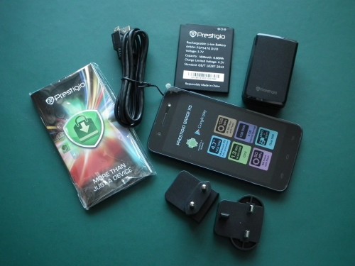 Prestigio Grace X5 dotarł do nas w pudełku charakterystycznym dla wszystkich urządzeń tego producenta. W środku opakowania oprócz telefonu znajdował się akumulator, ładowarka sieciowa, z zestawem wtyków do gniazdek europejskich, kabelek USB oraz komplet dokumentów. Ot standard i szkoda, że producent nie dorzucił np. etui, z którego dodatku jest znany lub folii ochronnej na ekran. Zaskoczeniem in minus był brak słuchawek dousznych, w zestawie sprzedażowym.