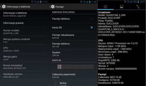parametry jak myphone infinity lte, prawie bo z mniejsza pamiecia i bez lte, procek ten sam,