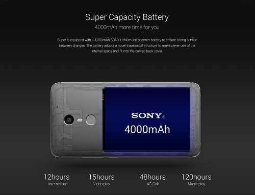 UMI Super to obudowa wykonana z użyciem stopów wykorzystywanych przy budowie samolotów. To także wytrzymała bateria o pojemności 4000 mAh, która ma zapewnić 12 godzin surfowania po sieci, 14 godzin pracy nawigacji, 15 godzin oglądania wideo, 32 godziny odtwarzania muzyki przez głośnik (60 godzin na słuchawkach) lub po prostu 320 godzin czuwania. Jeżeli już jednak uda się go rozładować, dzięki zastosowanej technologii PE+ Quick Charger naładuje się ponownie bardzo szybko. Podpięty złączem USB-C na 5 minut powinien zagwarantować dwie godziny pracy, a po 30 minutach wytrzyma kolejny dzień. Ładowanie baterii do pełna ma natomiast trwać równe 100 minut.