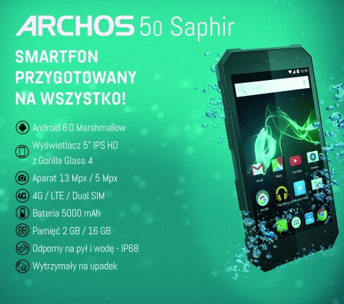 Firma ARCHOS wprowadza na polski rynek smartfon ARCHOS 50 Saphir. Ten wyjątkowo wytrzymały model jest dedykowany osobom pracującym w trudnych warunkach, które z uprzedzeniem patrzą na standardowe, podatne na uszkodzenia smartfony.