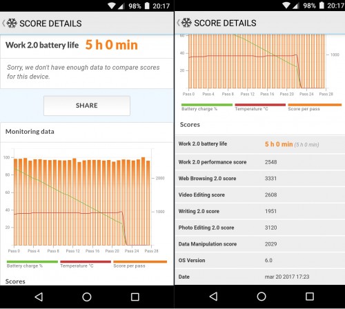 W teście obciążeniowym PCMark sprzęt wyłączył się po 5 godzinach. Co jest dobrym wynikiem w tej grupie smartfonów.