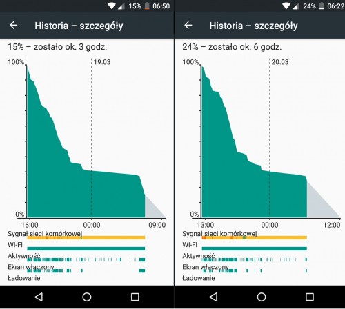 Wydawałoby się, ze taka mała pojemność nie zabezpieczy nam przyzwoitego czasu działania urządzenia. Po kilku dniach obcowania z tym urządzeniem, jestem pozytywnie zaskoczony długością jego pracy na jednym ładowaniu. Podczas zwykłego użytkowania smartfon spokojnie jest w stanie wytrzymać 2 pełne doby. W trybie intensywnej pracy, taka pojemność pozwala na działanie smartfona powyżej 1 dnia. Na czuwaniu zużycie baterii jest średnie – ok. 8% w ciągu nocy.