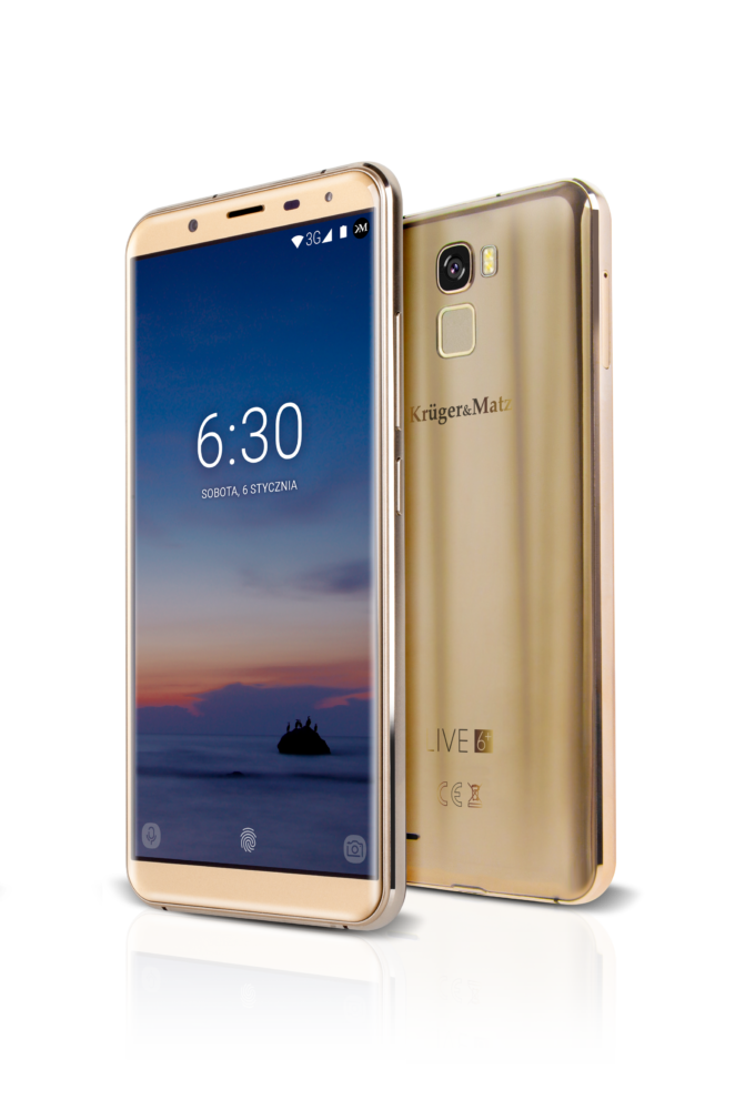Kruger&Matz stale podąża za trendami, udoskonalając oferowane produkty. Nowy smartfon LIVE 6+ wyposażony został w wyświetlacz HD+ o przekątnej 5,7 cala, w którym zastosowano proporcje 18:9. Pozwoli to użytkownikowi zmieścić na ekranie więcej treści wertykalnych, co znacznie poprawi komfort przeglądania stron internetowych. Co więcej, ramki w nowym smartfonie zostały zmniejszone, co w połączeniu z wykorzystaniem zaokrąglonego szkła 2.5D sprawia, że telefon jest nie tylko znacznie zgrabniejszy, ale również bardziej komfortowy w użytkowaniu.