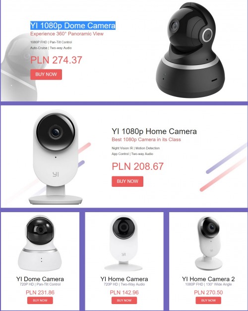 Wychodząc z domu chcemy mieć pewność, że nie dzieje się w nim nic złego, a dzieci pozostawione pod opieką niani są bezpieczne. Kamera podnosi poczucie bezpieczeństwa i pomaga w organizacji codziennego chaosu. Sklep internetowy Geekbuying ma także w ofercie wyprzedażowej kamery do monitoringu marki Xiaomi Yi. Wszystkie modele można skonfigurować z dedykowaną i bezpłatną aplikacją, która umożliwi oglądanie obrazu z domu na żywo w dowolnym miejscu na świecie. Kamer są kompatybilne z systemami Android, iOS oraz Windows, dzięki czemu użytkownicy urządzeń mobilnych z dostępem do Internetu mogą bez problemów kontrolować sytuację w mieszkaniu. Kamery mają wbudowany czujnik ruchu działający również w trybie nocnym.