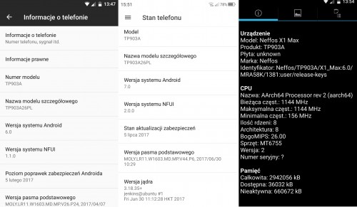 Telefon działa w oparciu o zmodyfikowany system Android 6.0 Marshmallow z aktualizacją do Android 7.0 Nougat. Tutaj muszę pochwalić producenta, aktualizacja Smartfon otrzymał aktualizację systemu Android z wersji Marshmallow do wersji Android 7.0 Nougat jeszcze w czasie trwania testów.