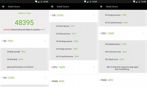 AnTuTu Benchmark, jedna z najpopularniejszych na świecie, darmowych aplikacji do testowania wydajności naszych smartfonów, pkazała wynik na poziomie 48400 pkt.