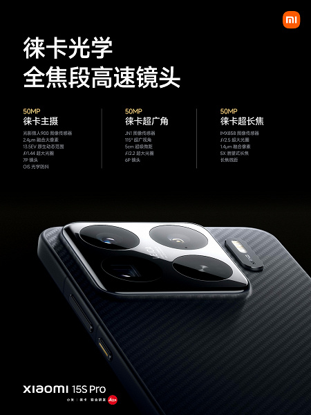 Xiaomi 15S Pro został wyposażony w aparat Leica z trzema 50-megapikselowymi czujnikami, baterię o pojemności 6100 mAh z obsługą ładowania przewodowego 90 W i ładowania bezprzewodowego 50 W. Nie zabrakło również ochrony IP68 i wsparcia dla łączności UWB, Wi-Fi 7 i IR, portu USB 3.2 Gen 1, głośników stereo, 4 mikrofonów i potężnego silnika wibracyjnego.