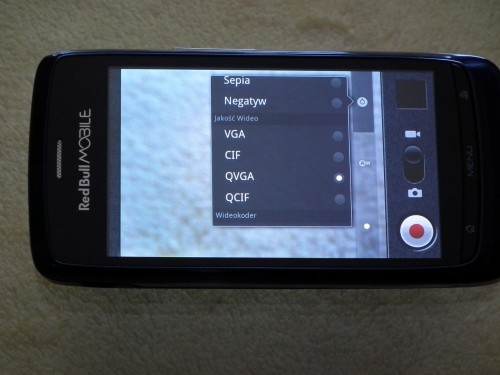 ZTE Blade w wersji Red Bull MOBILE pozwala rejestrować zdjęcia w rozdzielczości 2048x1536pikseli z autofokusem. Blade z całą pewnością nie posiada aparatu, który zadowoli fanów zdjęć i wideo. Nie posiada nawet fizycznego przycisku migawki. Zdjęcia nawet przy dobrych warunkach oświetleniowych są lekko nieostre, a kolory słabo nasycone i do tego widać duże zaszumienie. Przy gorszych warunkach lub, gdy się ściemni nie ma możliwości zrobienia dobrego zdjęcia. W menu mamy do wyboru pełen zestaw funkcji znany z menu standardowego Androida 2.2. Galeria umożliwia oglądanie zdjęć i odtwarzanie filmów. W przypadku zdjęć możemy także przeprowadzić podstawową edycję.