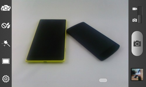 Interfejs aparatu jest intuicyjny, wszystkie opcje umieszczono w doku po lewej stronie a po prawej mamy przycisk spustu migawki, przełącznik foto/wideo i podgląd ostatnio zrobionego zdjęcia.